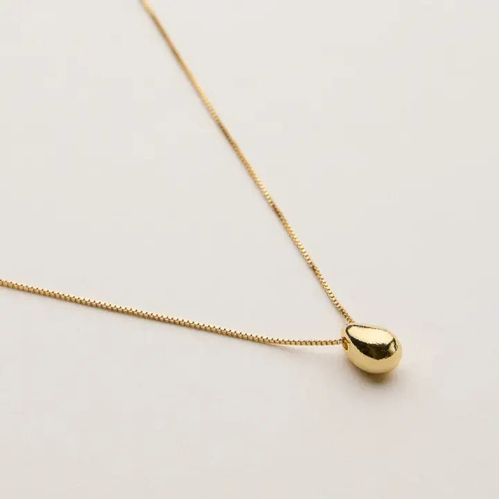 This 18K gold dipped teardrop necklace combines elegance with everyday versatility. The sleek teardrop pendant hangs from a fine box chain, offering minimalist charm. Designed with an adjustable clasp, it ensures a perfect fit for layering or wearing solo. A refined piece that transitions effortlessly from day to night.