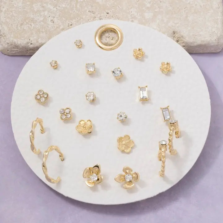 Assorted Flower Stud 10pc Earrings Set