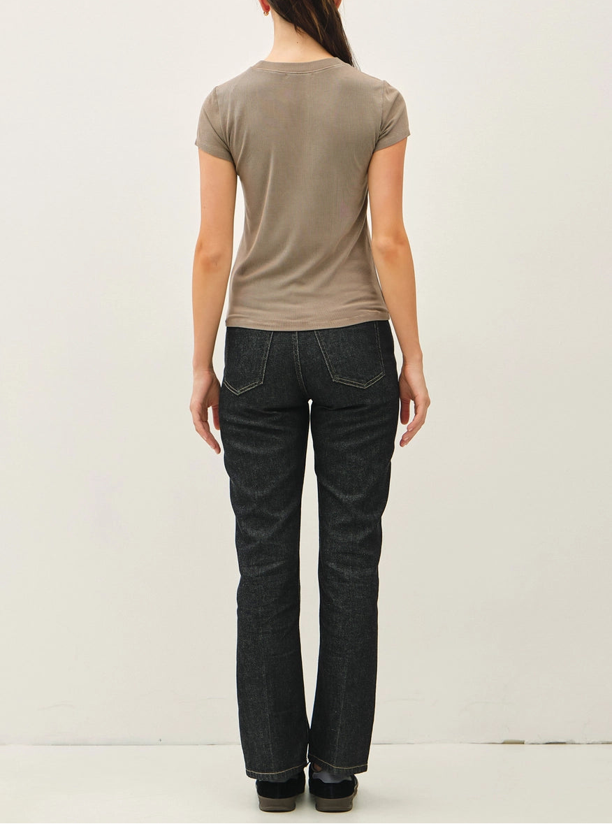 The Everyday Rib Tee is your go-to essential for effortless style. Crafted from soft, lightweight fabric, this classic baby tee features a flattering fitted silhouette with a crew neck and short sleeves. The subtle ribbed texture adds dimension while the hip-length cut creates a modern, versatile look that pairs seamlessly with everything in your wardrobe. Perfect for layering or wearing solo, this timeless piece delivers comfort and sophistication for any occasion.