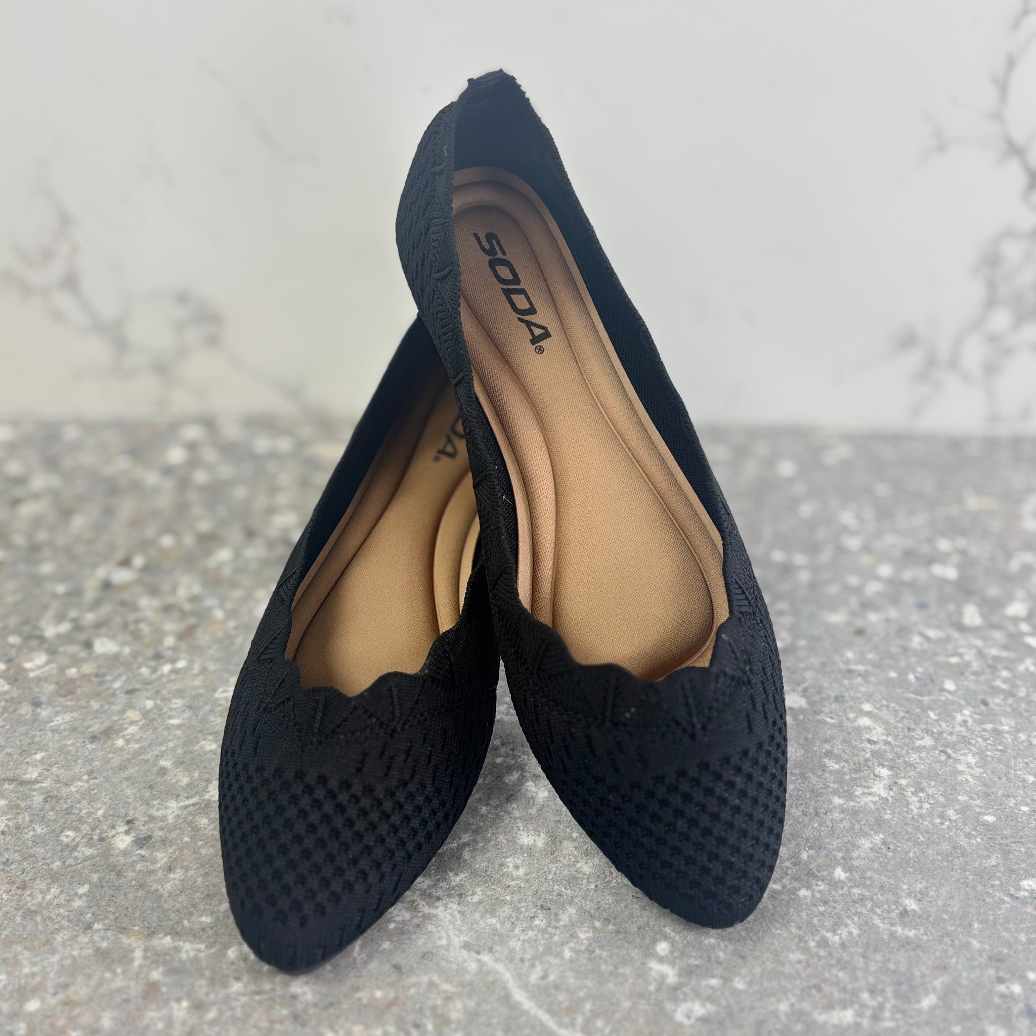 Step into effortless style with the Black Kosta Flats. Crafted from delicate crochet-knit fabric with a charming scallop edge, these flats offer breathable comfort and a unique, feminine touch. Perfect for all-day wear, they blend casual elegance with versatile black color to complement any outfit. Elevate your footwear collection with these lightweight, eye-catching flats designed to keep you comfortable and chic wherever you go.