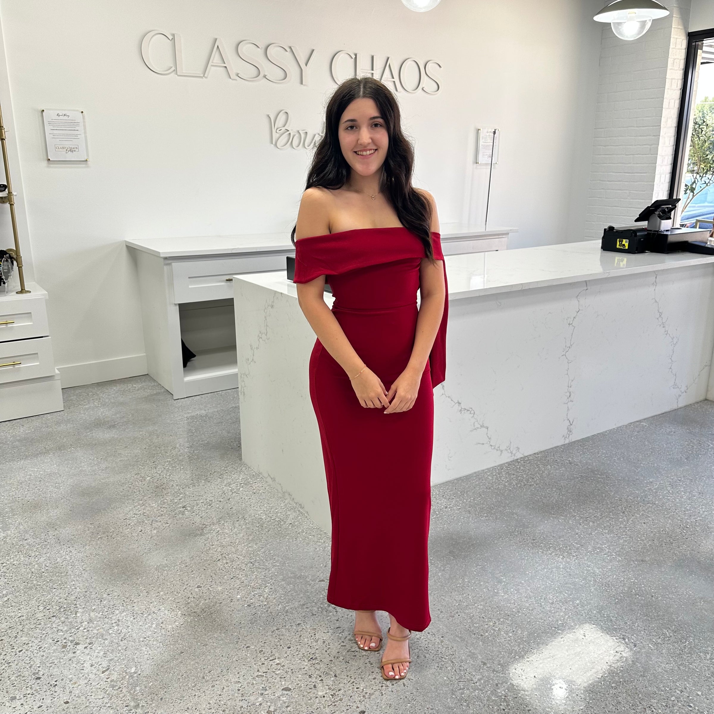 Embrace effortless elegance with the Melanie Midi Dress. Its off-shoulder design beautifully highlights your neckline, while the midi length adds a touch of sophistication. Perfect for both daytime events and evening outings, this dress offers a flattering fit that moves gracefully with you. Elevate your wardrobe with a versatile piece that combines comfort and style seamlessly.