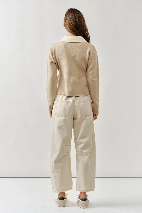 Elevate your wardrobe with the Cecilia Peplum Sweater Top, featuring a flattering peplum silhouette that enhances your shape. The contrast collar adds a polished, stylish touch perfect for both work and weekend wear. Crafted for comfort and tailored to impress, this sweater combines effortless elegance with everyday versatility.