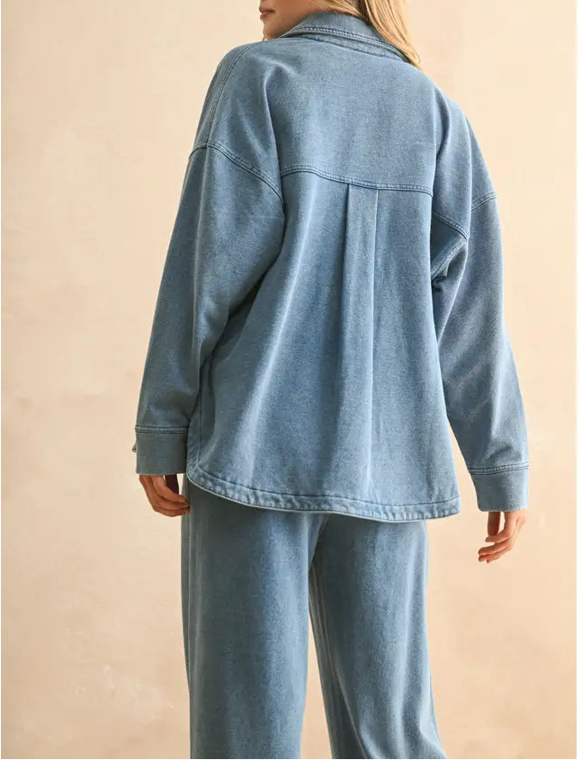 Elevate your wardrobe with the Stella Shacket, a perfect blend of shirt and jacket. Crafted from soft, washed knit fabric, this button-front layer offers cozy warmth and effortless style. Its versatile design makes it ideal for layering on cool days, adding a polished yet relaxed touch to any outfit. Embrace comfort without sacrificing chic appeal with the Stella Shacket.