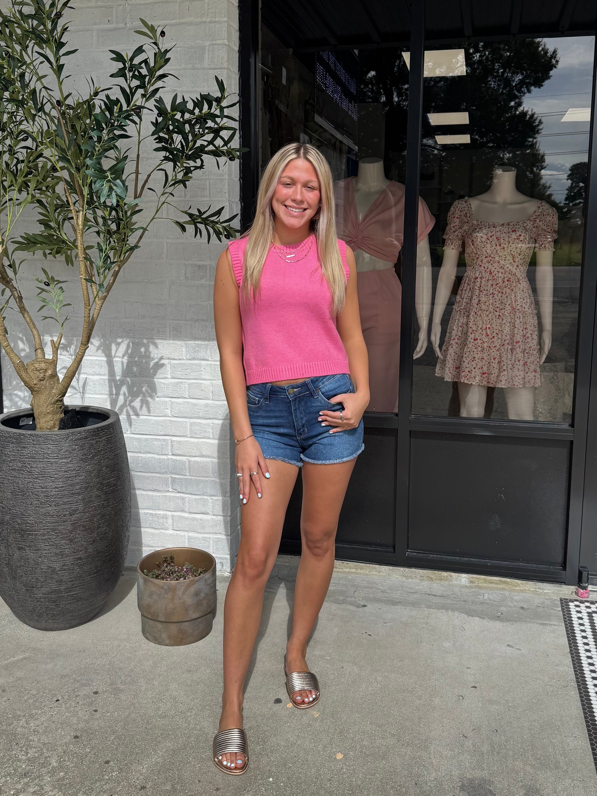 Dark Wash Hi Rise Frayed Hem Short