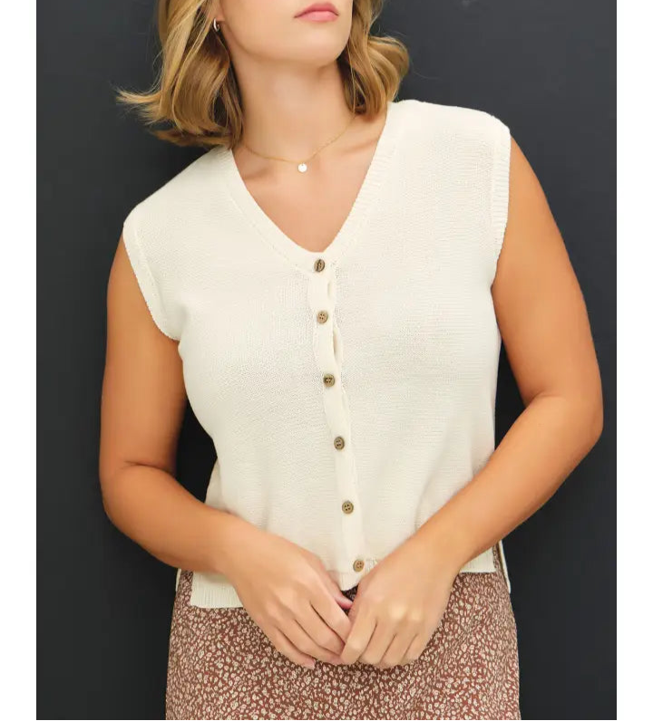Elevate your wardrobe with our Curvy Kennedy Tank Top, a slub knit button-up sweater vest designed to flatter your unique silhouette. The textured slub fabric adds dimension while the button-up front offers versatile styling options. Perfect for layering or wearing alone, this tank top combines timeless appeal with modern comfort. The curve-friendly fit accentuates your best features, making it an irresistible addition to your collection. Don't miss this essential piece that transitions effortlessly from office to evening.