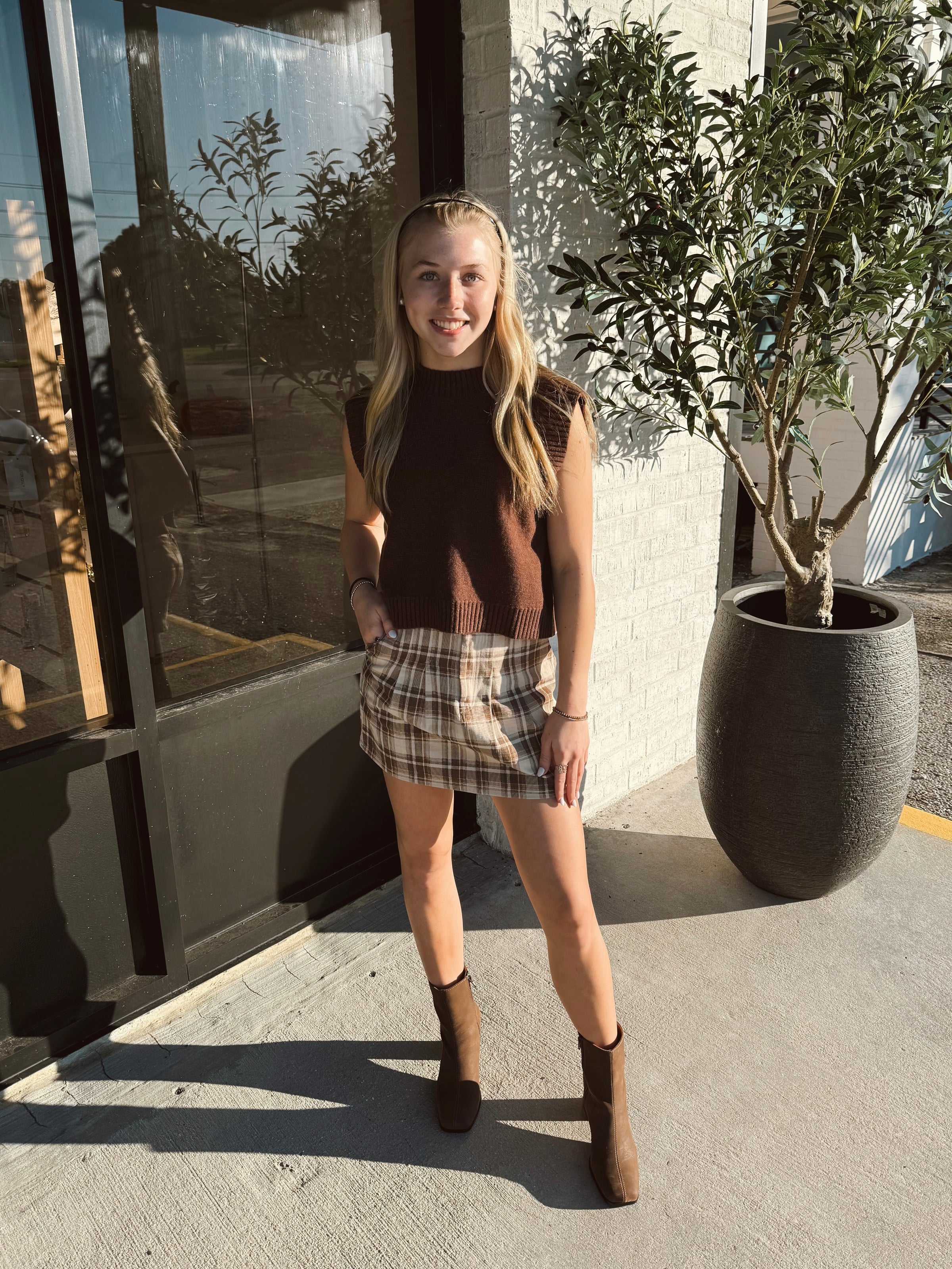 Elevate your wardrobe with the Elise Vest Top, featuring soft knit fabric and elegant ribbed edges for a comfortable yet polished look. Its open back design adds a touch of sophistication and breathability, making it perfect for layering or wearing on its own. This versatile vest seamlessly blends style and comfort to enhance any outfit with effortless charm.