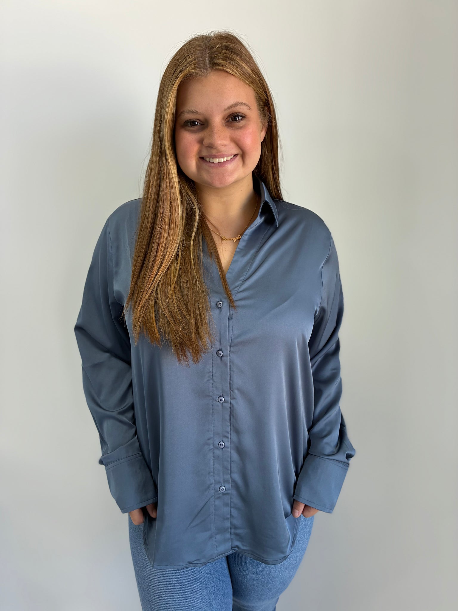 Elevate your wardrobe with the Emi Satin Button Up, a sleek shirt designed for effortless elegance. The smooth satin fabric drapes beautifully, while the classic collared neckline adds timeless sophistication. Perfect for both professional settings and chic evenings out, this button-up combines comfort with style to keep you looking polished all day long. Embrace a touch of luxury with every wear.