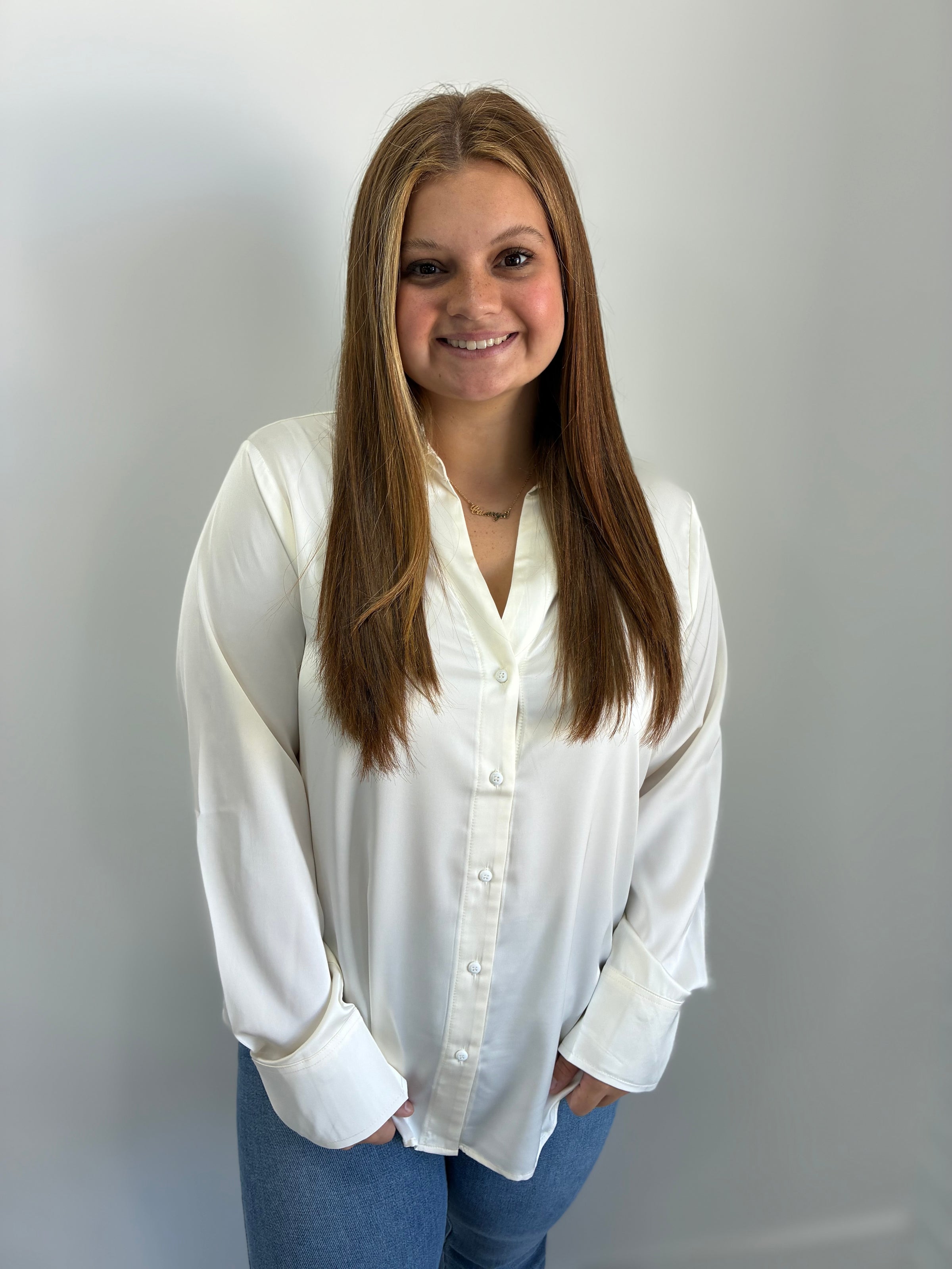 Emi Cream Satin Button Up