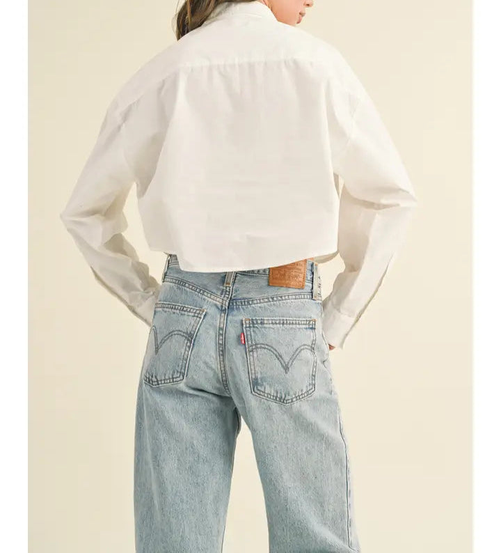 Elevate your wardrobe with the Erica Cropped Button Shirt, designed for a chic, modern look. Its tailored fit and cropped length highlight your silhouette while offering versatile styling options. Perfect for layering or wearing solo, this shirt combines comfort with effortless sophistication, making it a must-have for any fashion-forward closet.