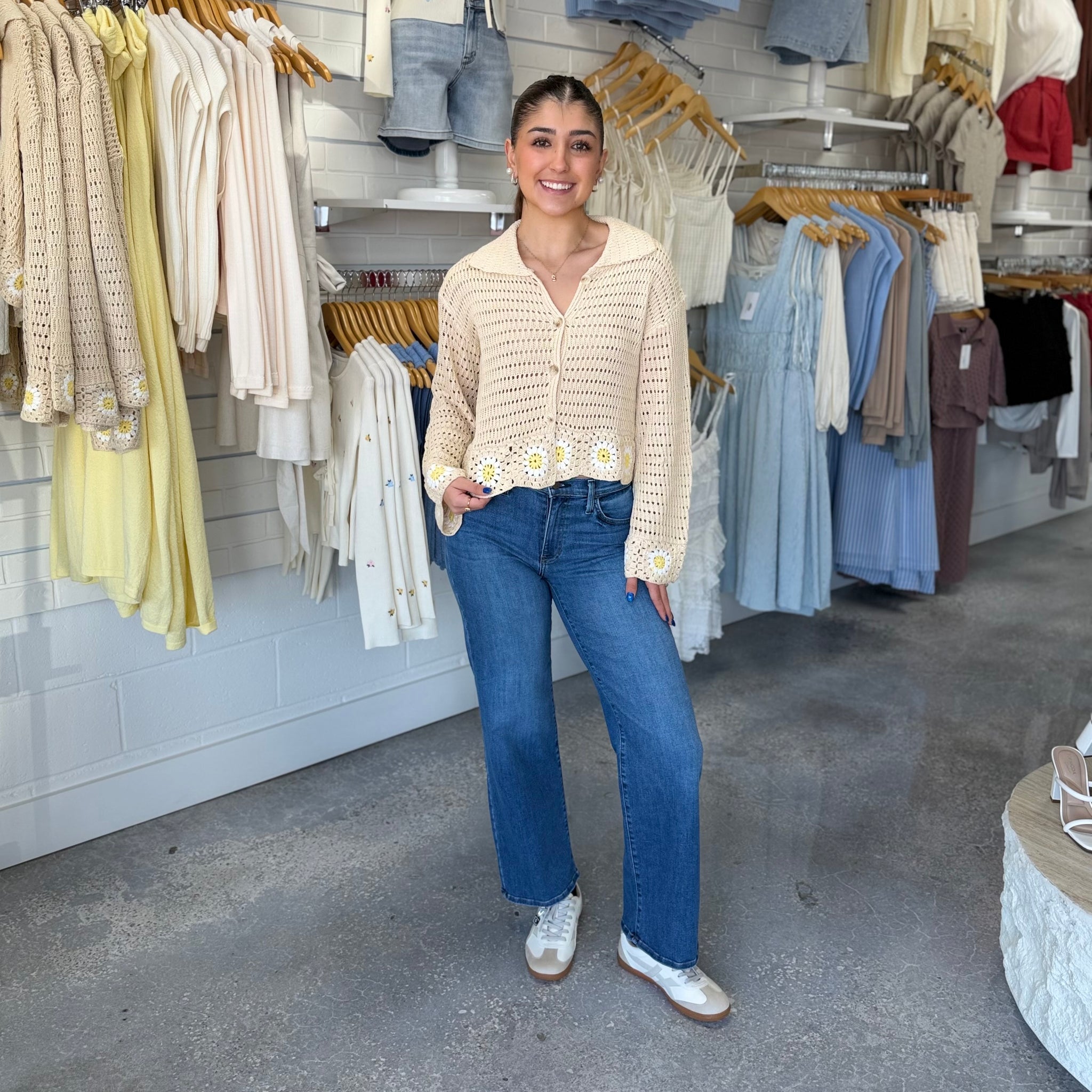 The Monochrome Knit Top delivers effortless sophistication with its sleek, coordinated palette. This cropped knit features a refined collar detail that elevates any casual outfit, while the fitted silhouette flatters your frame. Perfect for layering or wearing solo, it transitions seamlessly from day to night. The quality knit construction ensures comfort without compromising on style, making it an essential piece for building a versatile wardrobe. Pair it with high-waisted bottoms to complete the look.
