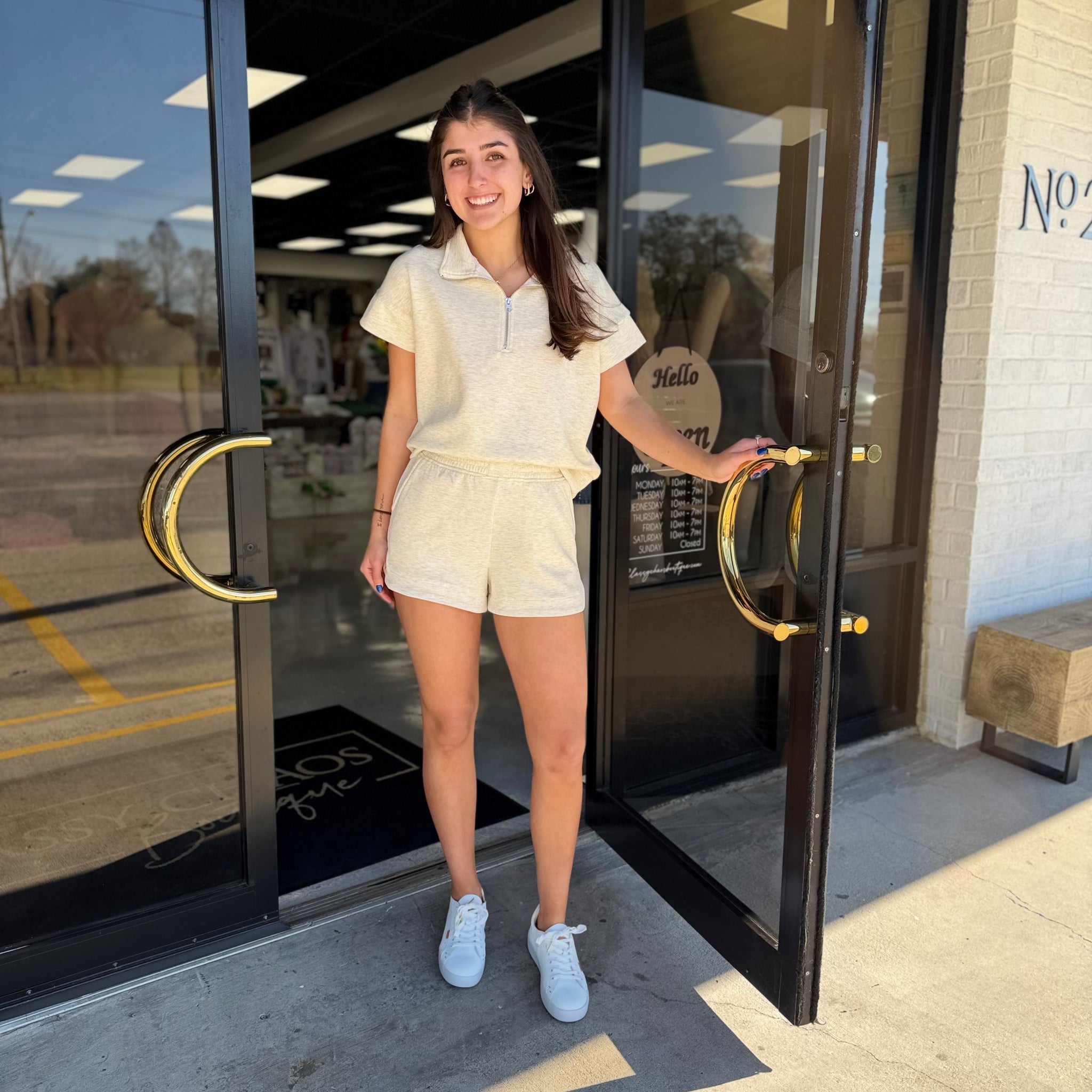 Elevate your wardrobe with The Skylar Scuba Set—the perfect investment for versatile, on-trend style. This coordinated two-piece combines a sophisticated high-neck half-zip top with tailored shorts, delivering a polished look that works from casual outings to weekend getaways. The scuba-inspired fabric offers durability and comfort, ensuring you'll reach for this set again and again. Whether you're building a capsule wardrobe or seeking that effortless put-together aesthetic, this set checks every box. Quality, style, and practicality—all in one.